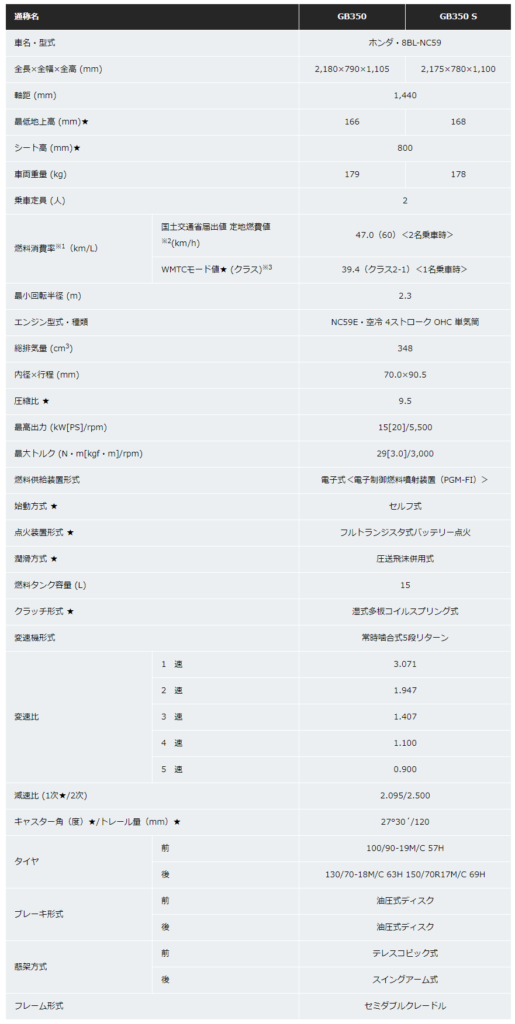 ●GB350、GB350 Sともに平成32年(令和2年)排出ガス規制に適合