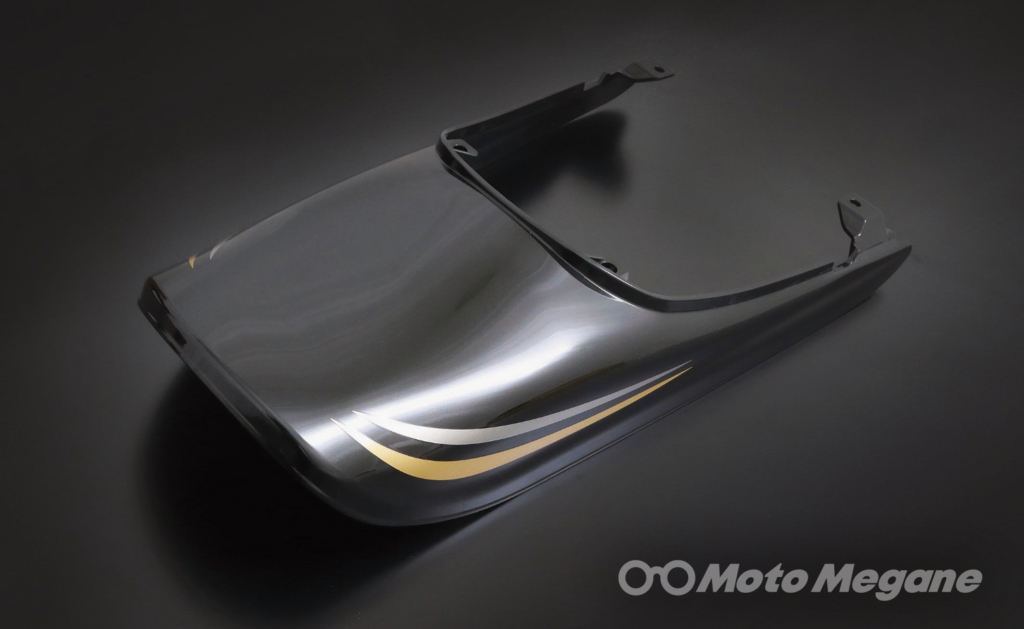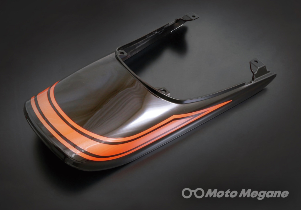 ロングテールカウル専用のスライトリアフェンダー(1万5000円+税)は、純正テールランプを60mm後方移動。ABS+カーボン粒子のハイブリッド素材と1ピース構造で、走行時もブレない高剛性が自慢。※画像はプロトタイプとなります。