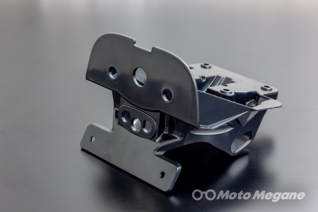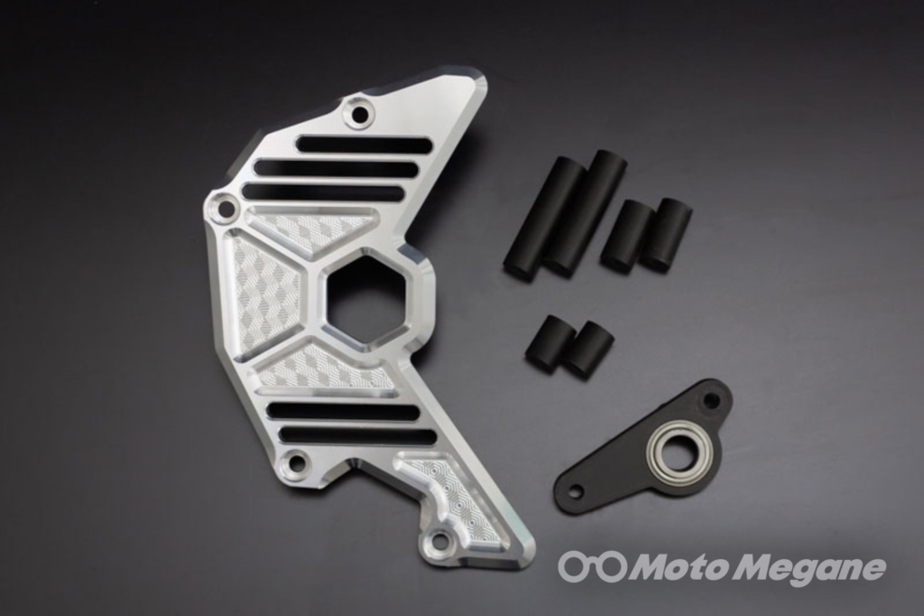 アルミ削り出しのハニカムスプロケットカバー(税込価格30,800円)はその名の通り、独自のハニカム(蜂の巣構造)デザインだ。シフトホルダー装備でダイレクトなシフトフィールも実現。※画像はプロトタイプになります。