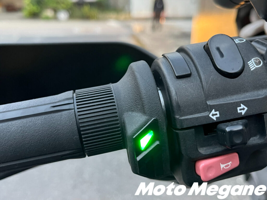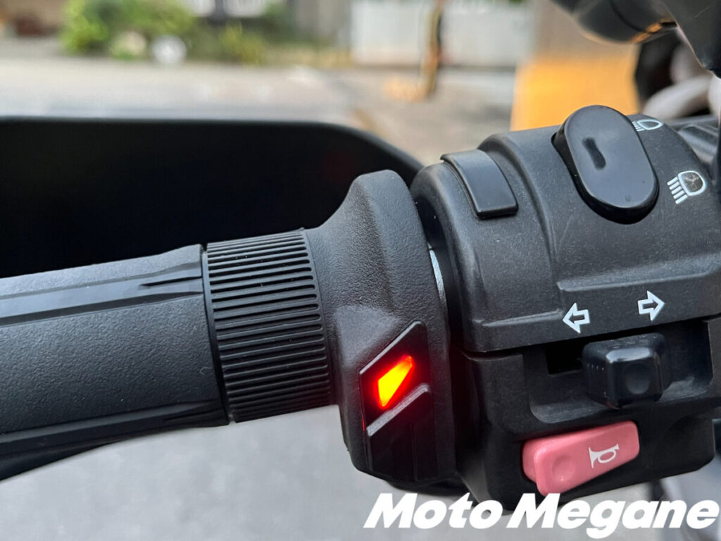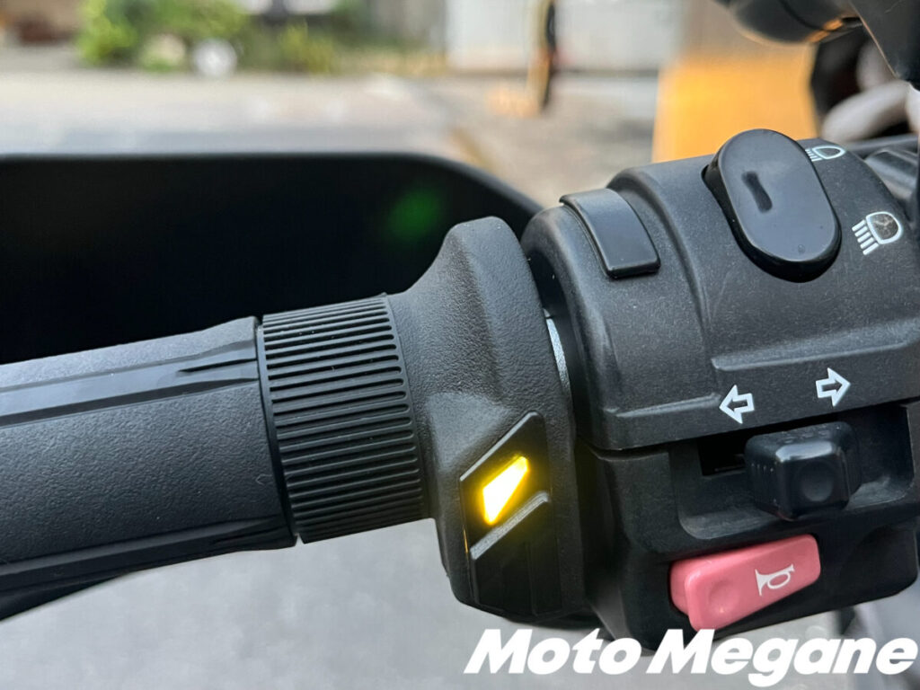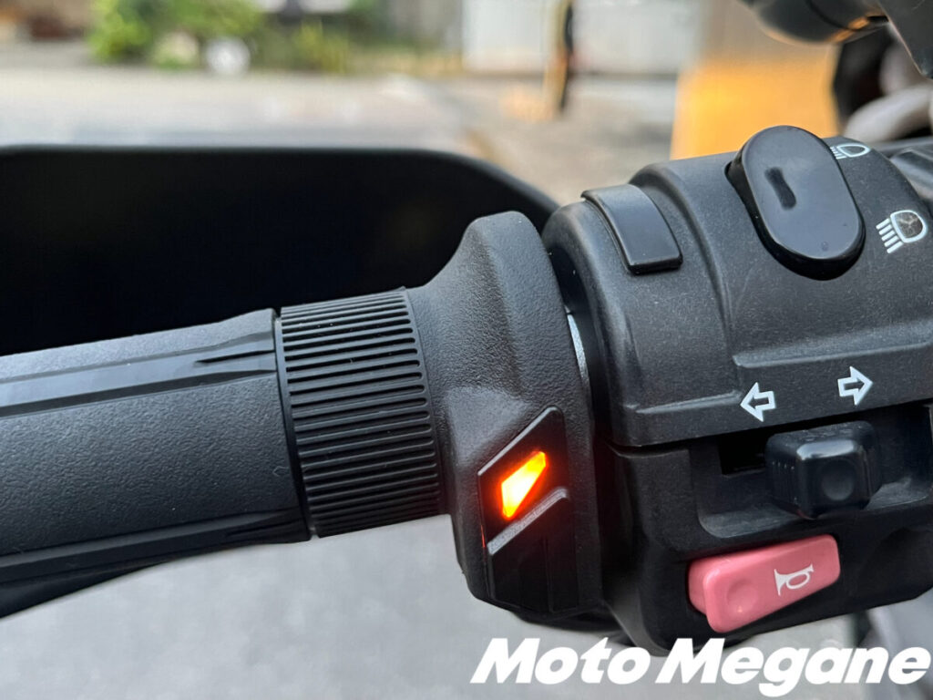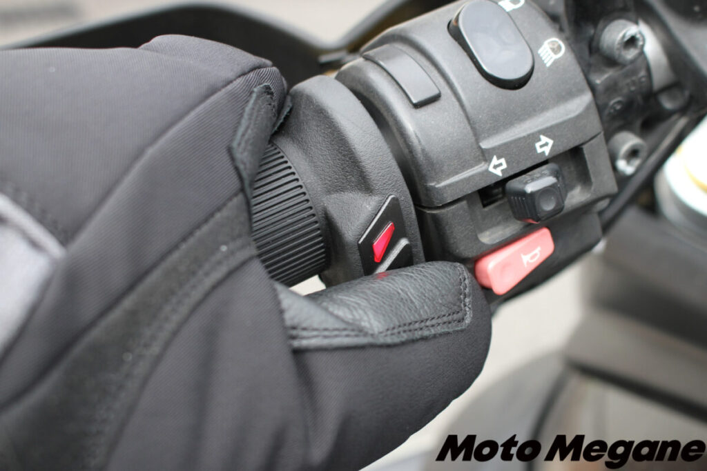 グリップを握ったまま親指1本で操作できるスイッチがはとても押しやすく、厚手のウインターグローブをはめた状態でも問題なく使えます!