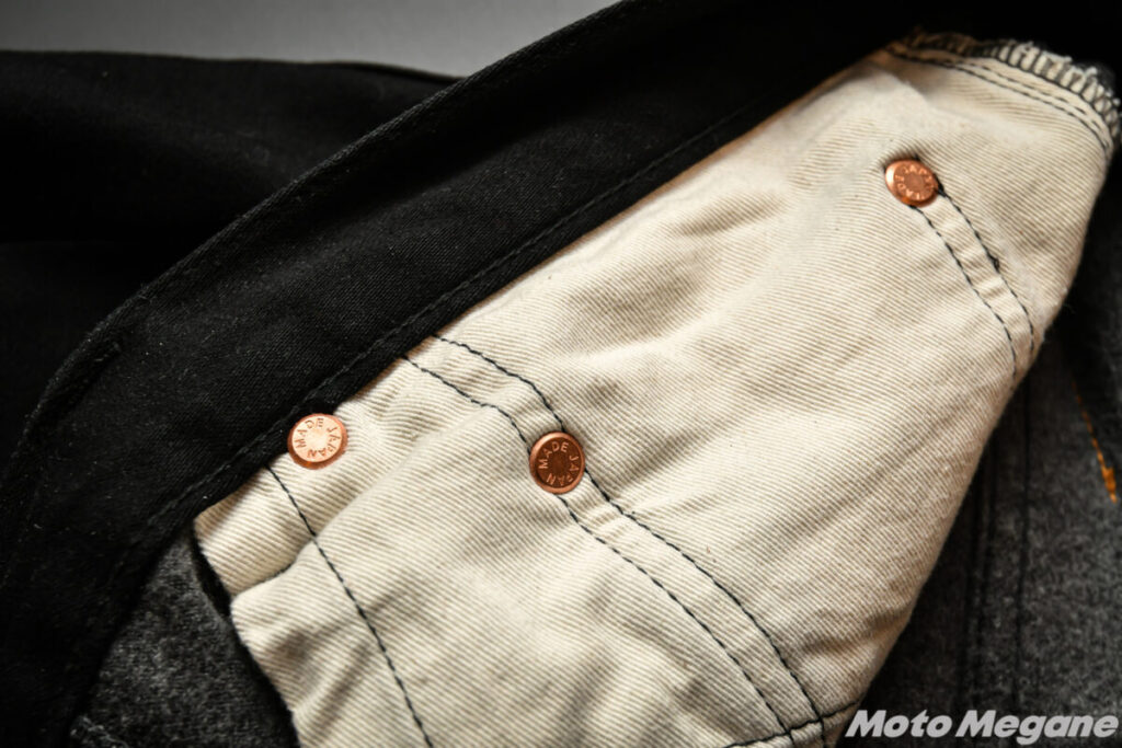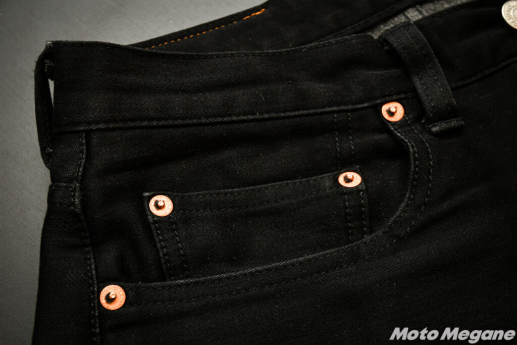 数あるウエアのなかから冬場のライディングパンツにジーンズを選ぶ人は、きっとファッションにそれなりのこだわりを持つ方でしょう。「ハイスペック・ストレッチ・スリムパンツ」は、ここまで述べた機能性はもちろんですが、児島ジーンズらしいこだわりが随所に盛り込まれています。