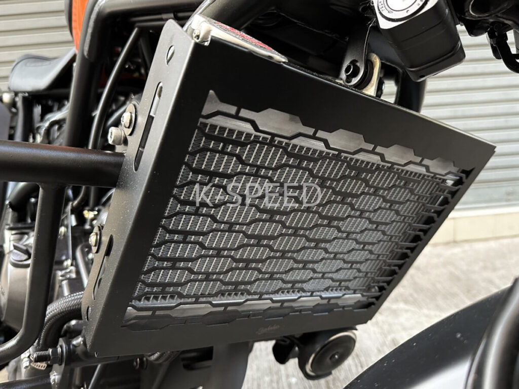 水冷エンジンの冷却に欠かせないラジエーター。しかしその本体はアルミ製のため、飛び石などでフィンが潰れてしまうこともよくあります。そんな時にはラジエーターのコアガードの装着がオススメ。K-SPEEDのコアガードは、冷却効率とプロテクションの両立を狙った独特のパターンを採用してカスタムアピールにも優れています。価格:1万9000円(税込)