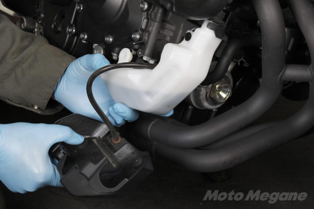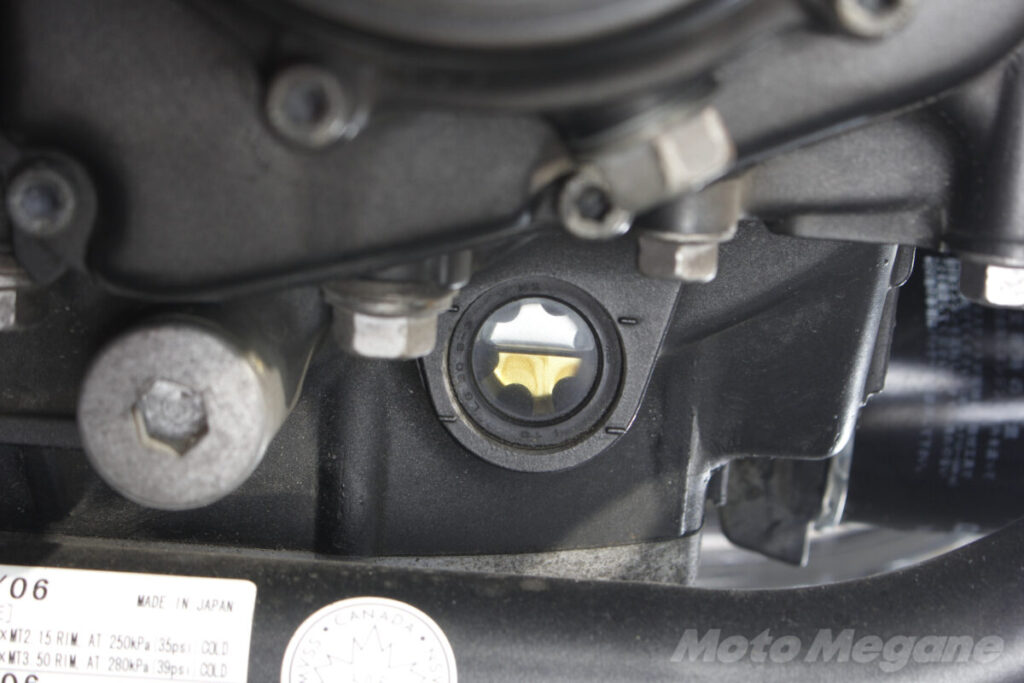 また、水温計の針は安定しているか? オーバーヒートの兆候は無いか?の確認は今の時期にしておきます。さらに、見える部分の冷却ホースが劣化で膨らんでいないか?ひび割れが無いかも見ておきます。