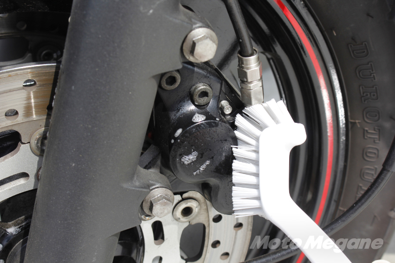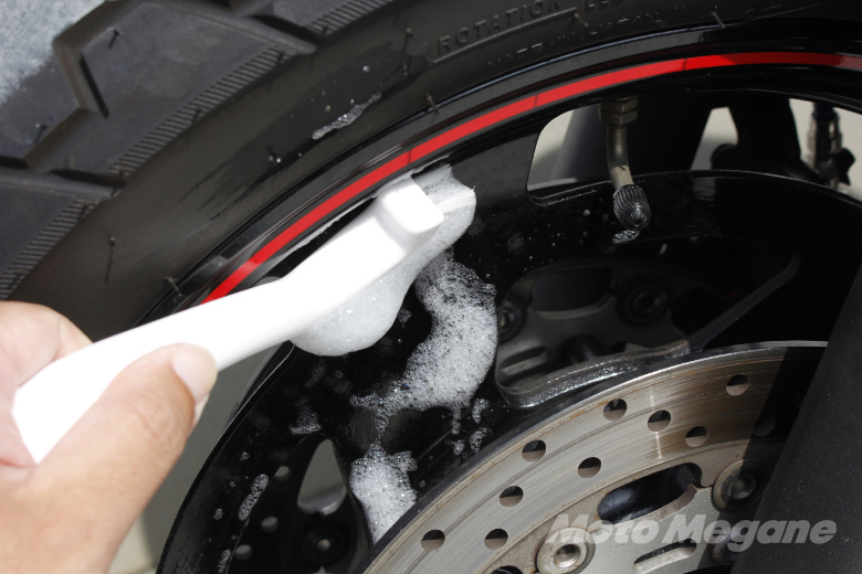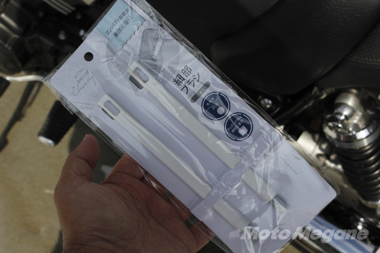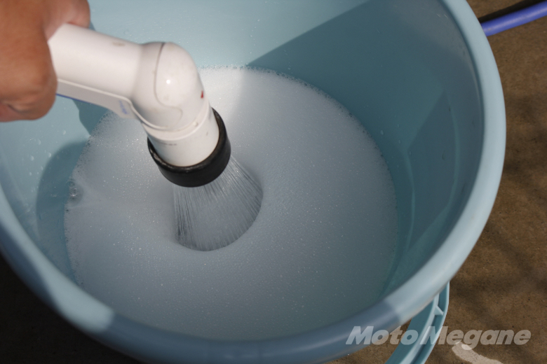 ブラシならスポンジとかで洗いにくい入り組んだ部分も洗えるので、バイク洗車ならブラシ必須ですね。