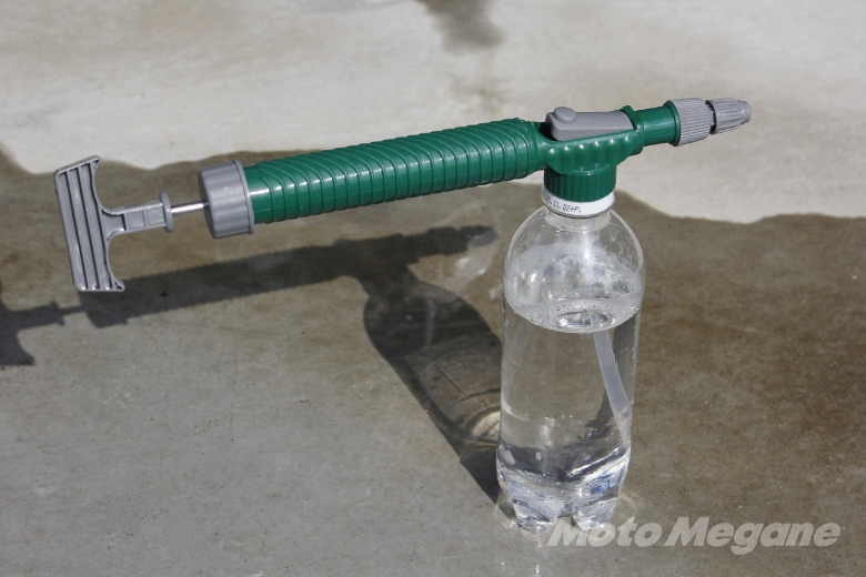 後端のハンドルをシュコシュコするとペットボトル内が加圧されて