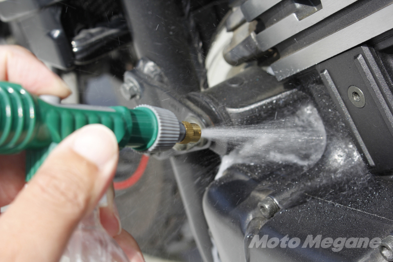 バイクの洗車の際には水を掛けたくない部分というのが少なからずあるのですが、新しいバイクの場合はそんなに神経質になる必要は無いと思います。が、高圧洗浄機をむやみに使うのを避けた良い部分はありますので、使う場所は選びたいものです。