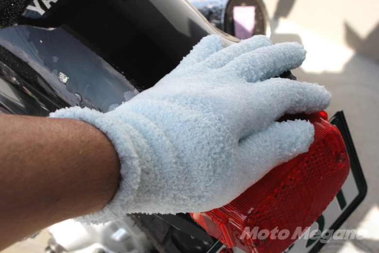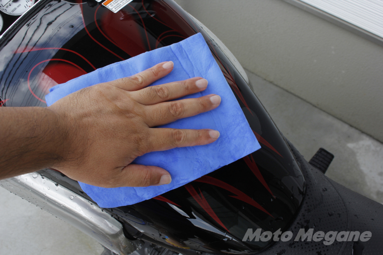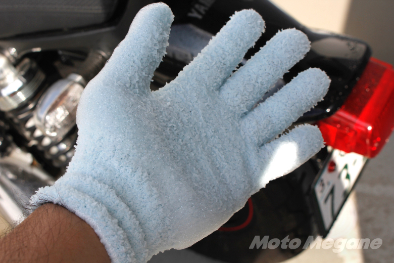 スポンジのような吸水力で洗車の水をぐんぐん吸い上げます。サイズは小さいですが、それがバイクには好都合なのです。
