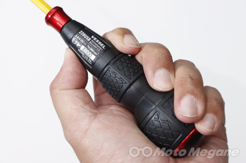 電気工事の職人さんに大人気のVESSELボールグリップドライバーと同形状で握りやすく、力が入りやすい。さらに電動なのに軽い!ビット抜きの重量は160gだ。
