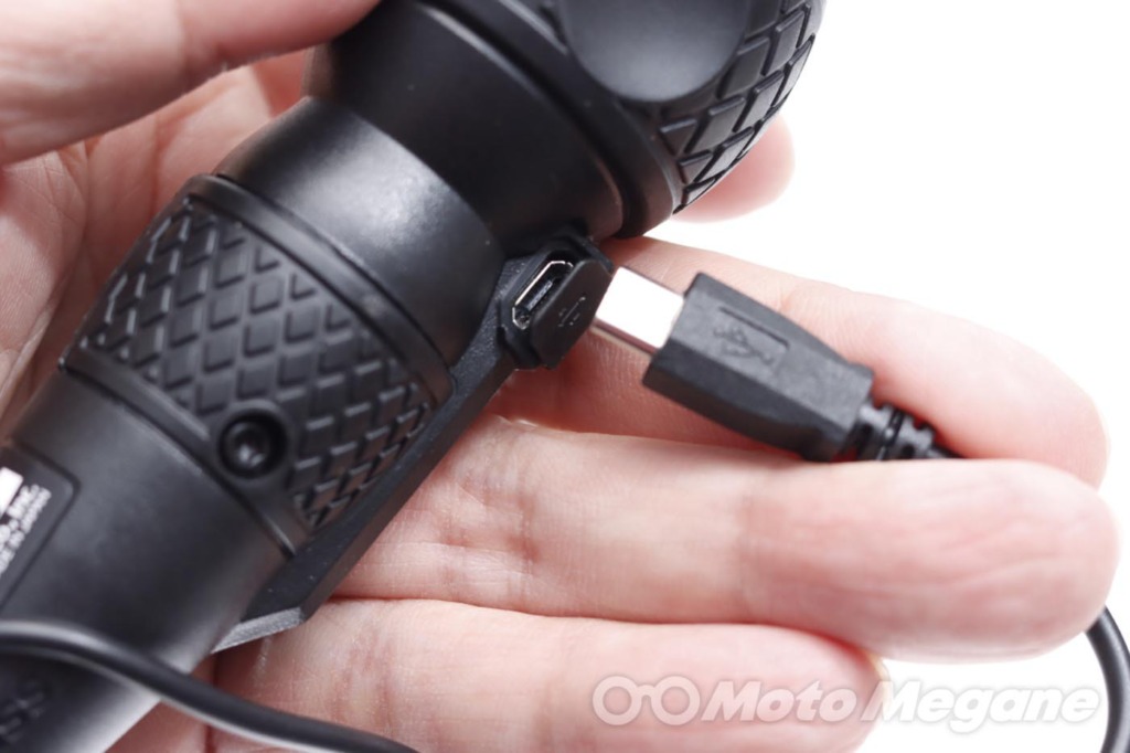 充電はマイクロUSBのtype-Bである。端子はゴムカバーで保護されている。