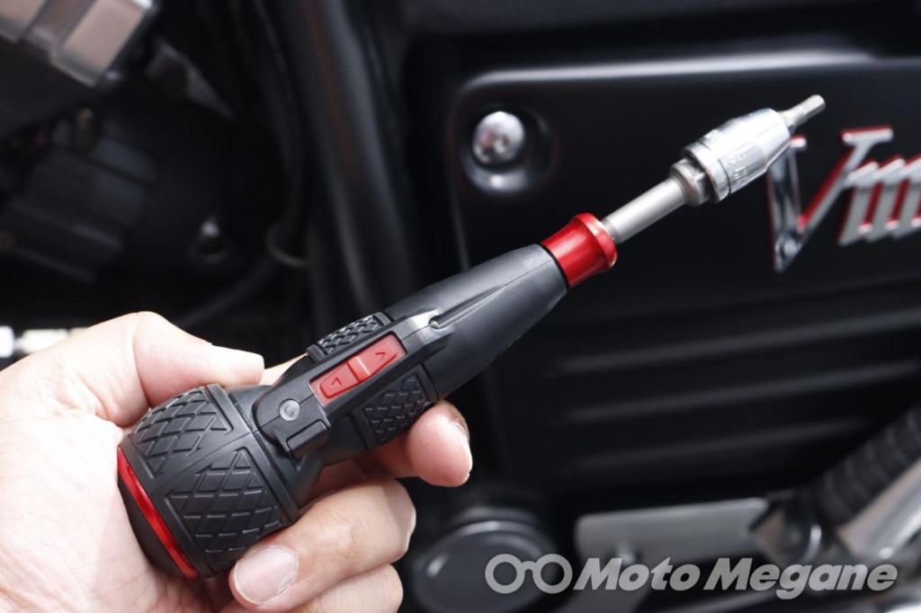 私も普段作業のときはインパクトドライバーを使っていたが、重いし、トルクが強すぎるので基本的にボルトを緩めるときにしか使えない。そう考えると電ドラボールの機動性と適度なトルク感はバイク整備にも最適である。