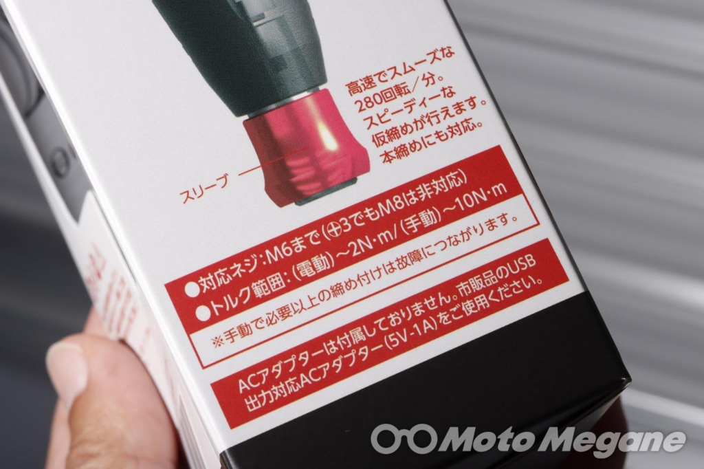 ただし、注意しなければならないのが対応のトルク範囲がある点である。手動でも10Nmを超えるトルクで締め付けると壊れるおそれがある。