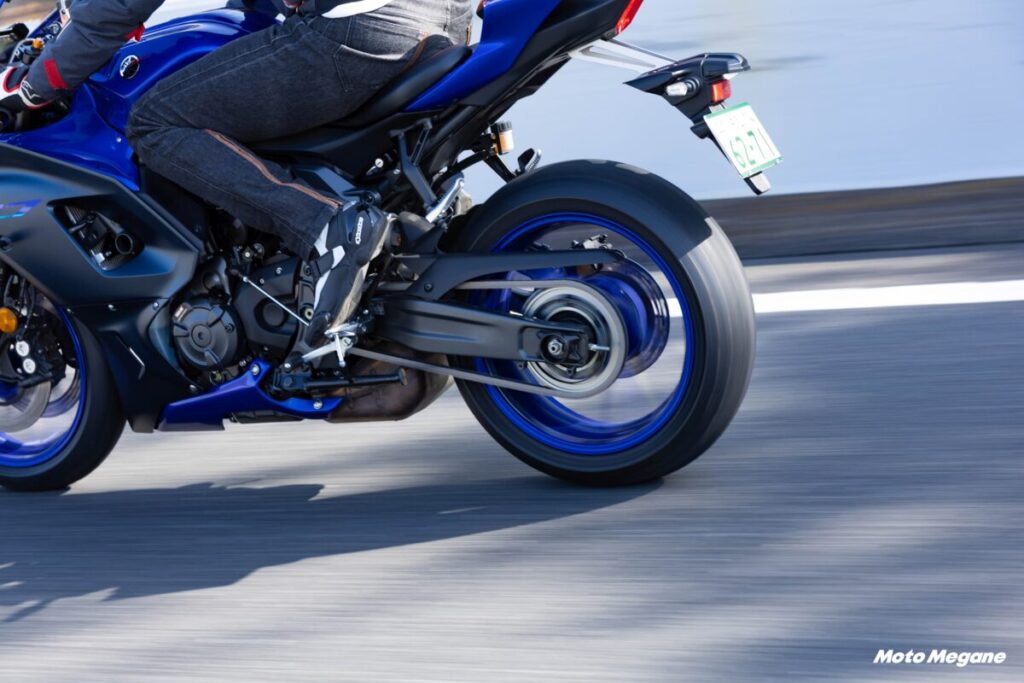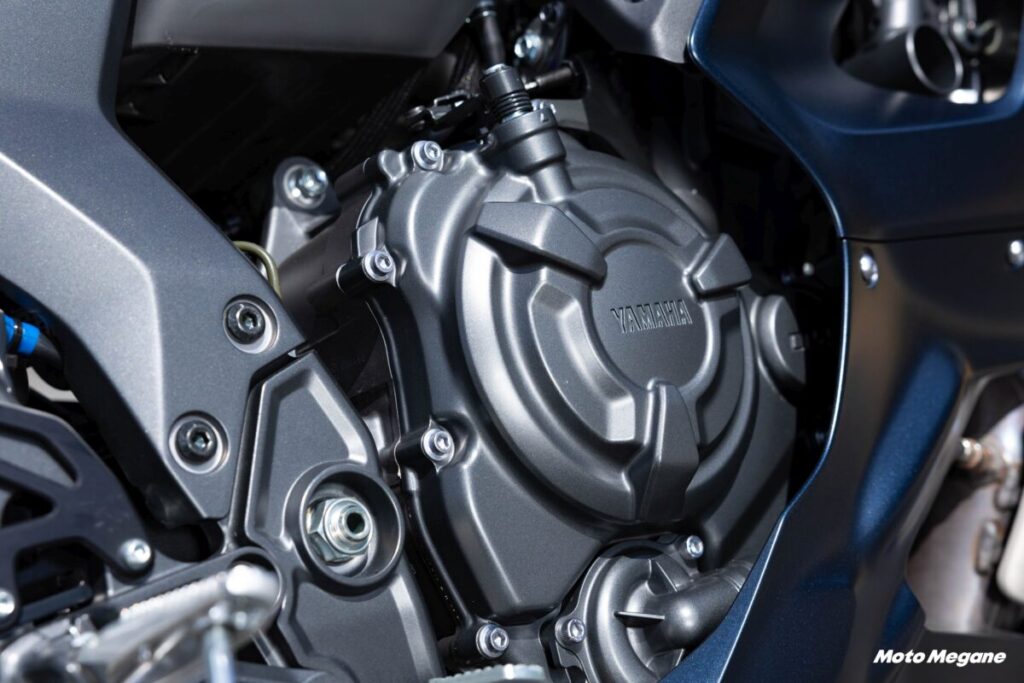 MT-07ベースとあってミドルクラスの2気筒エンジンは誰が乗っても楽しめるフレンドリーな性格。それでいて剛性の高い倒立フォークや、MT-07と比べて1.1度立ったキャスター角などにより、コーナリング時の安定感を向上しよりスポーティなライディングを実現している。