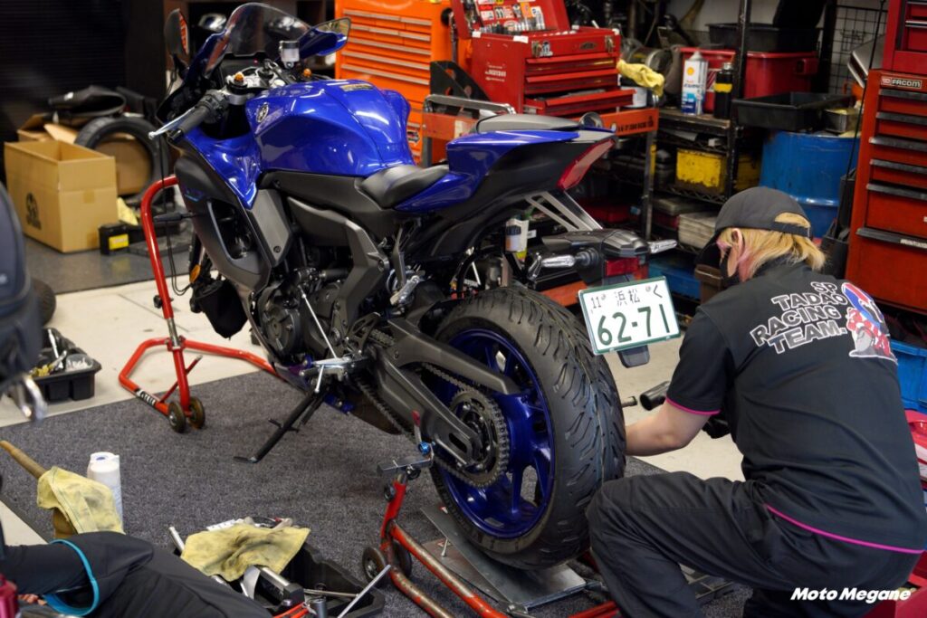 タイヤインプレを行うに際し、タイヤ交換をお願いしたのがSP忠男 浅草店。タイヤ、マフラー、オイル等を扱い、確かな作業からライダーの支持も厚い。
