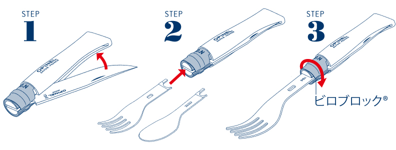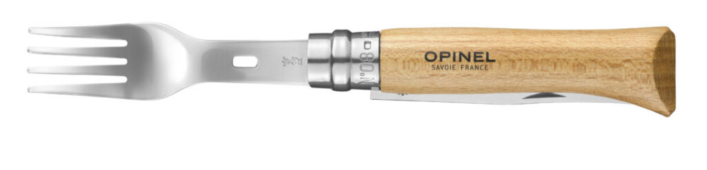 OPINEL(オピネル)から、No.08のナイフに取り付けて完成する純正オプションパーツのフォークやスプーンが登場した。