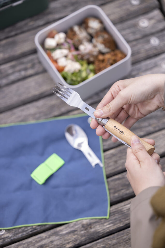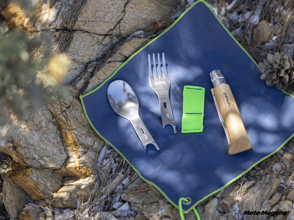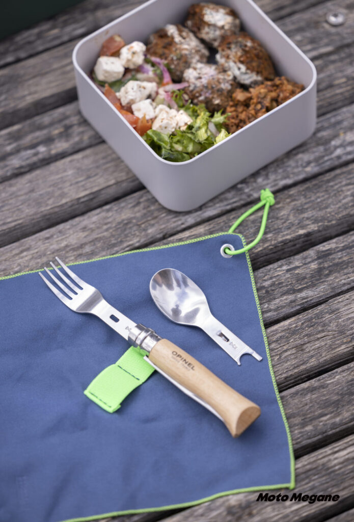 オススメなのがOPINEL(オピネル)からリリースされているナイフにプラスして使えるフォークやスプーンのセット。まさにキャンプツーリングにはぴったりの商品なのだ。
