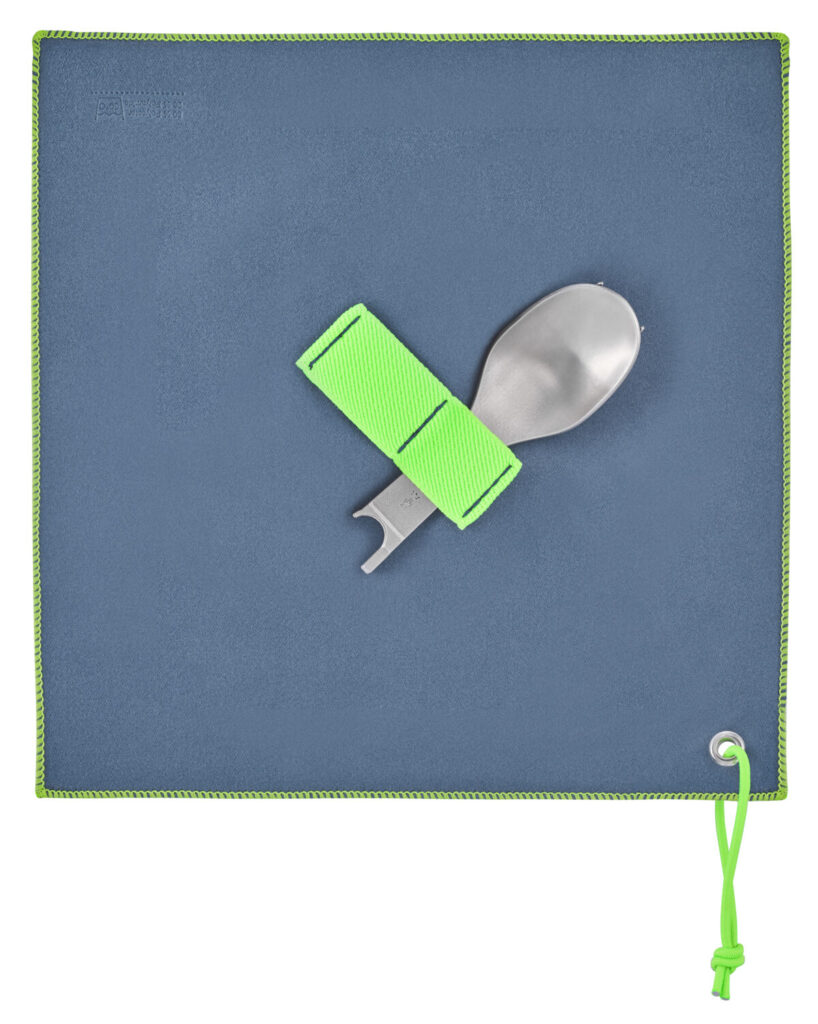付属のマイクロファイバーのキッチンタオルは、クロスとしても、持ち運び用のケースも使えて便利だ。