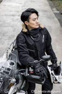 撮影時は10月にも関わらず気温29℃の状況であったので、ものの数分で汗が噴き出すほどの暖かさを実感することができた。また、見た目のゴツさから想像できないほど重さを感じず、着心地も良好なので長距離ツーリングでも快適さを維持できるだろう。