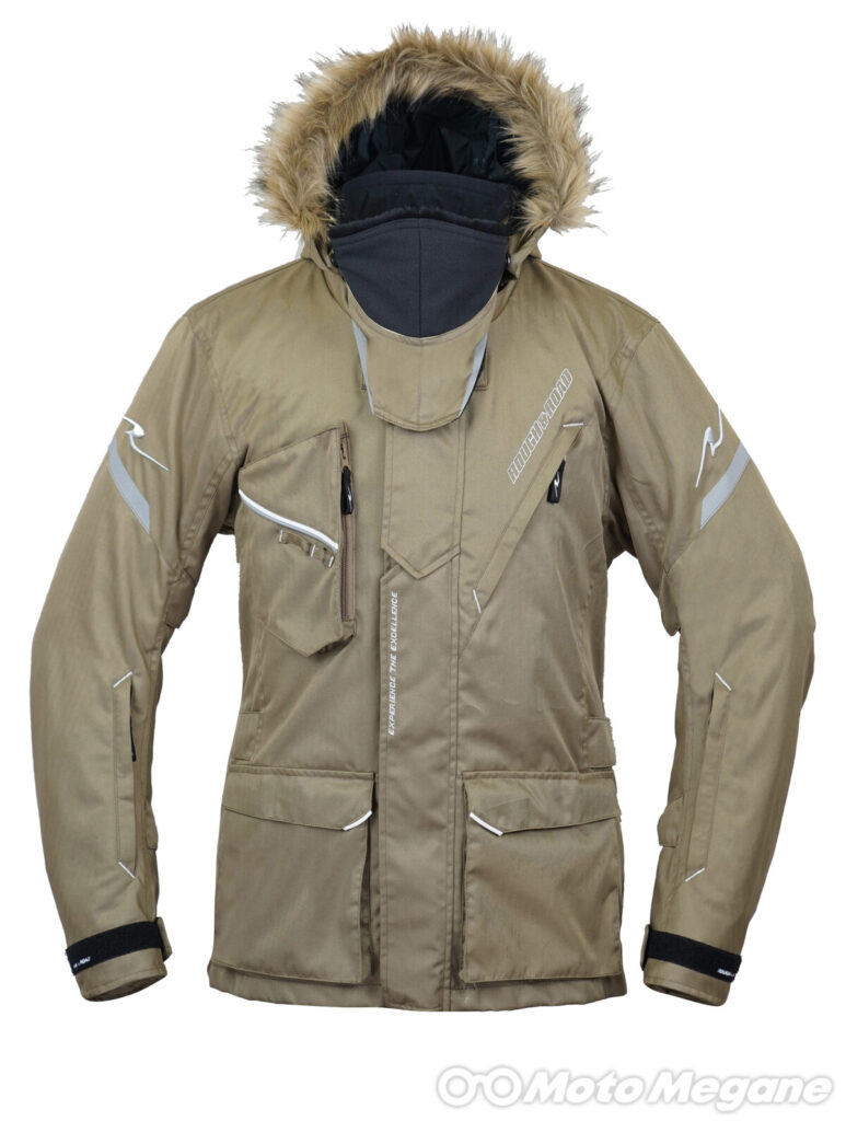 このジャケットは、実際に宗谷岬ツーリングに行ったことのあるライダーの声がしっかりとフィードバックされており、究極の耐極寒仕様となっている。電熱などはあえて採用せず、素材そのもので防寒できるレイヤード仕様となっているのが特徴で、冬山の山岳用ジャケット同等のスペックを実現している。