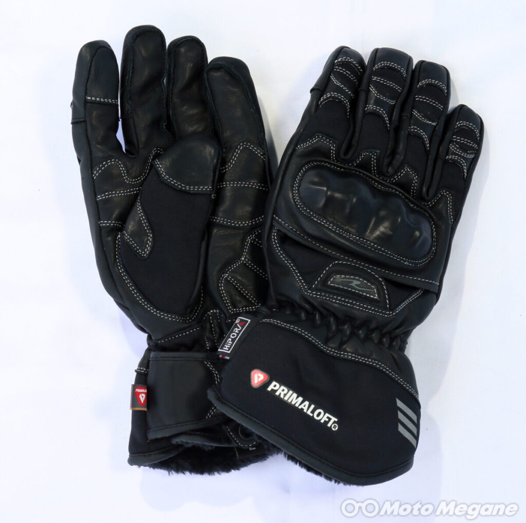 甲側には高い防風性を持つウインドガード生地を採用することで、冷たい外気をシャットアウト。動きやすいフローティングナックルパッドと各指のレザーフィンガーカバーは、プロテクション性と同時に防風性を高次元で両立。さらに手首内側にはフェイクボア、グローブ内部には、高機能中綿の最高峰素材、プリマロフト®を採用。軽く撥水性の高い中綿で極寒の中でのライディングを快適にする。