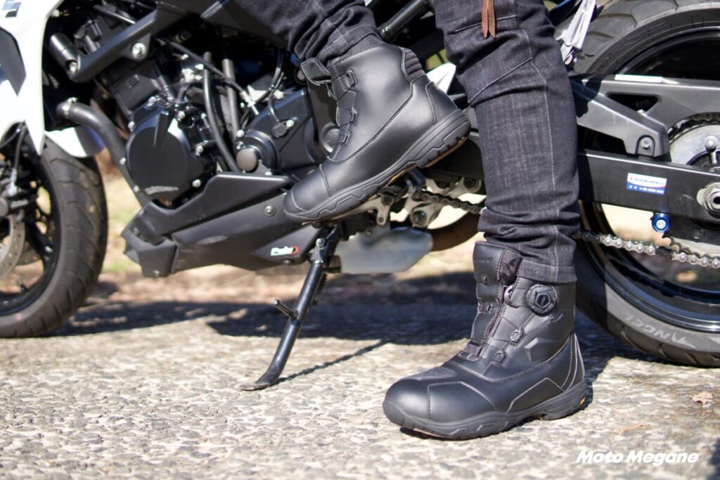 耐久性の高いビブラムソールを使い、グリップ力と歩きやすさは、ツーリングから街乗りまで大いに活躍してくれることは間違いなし!