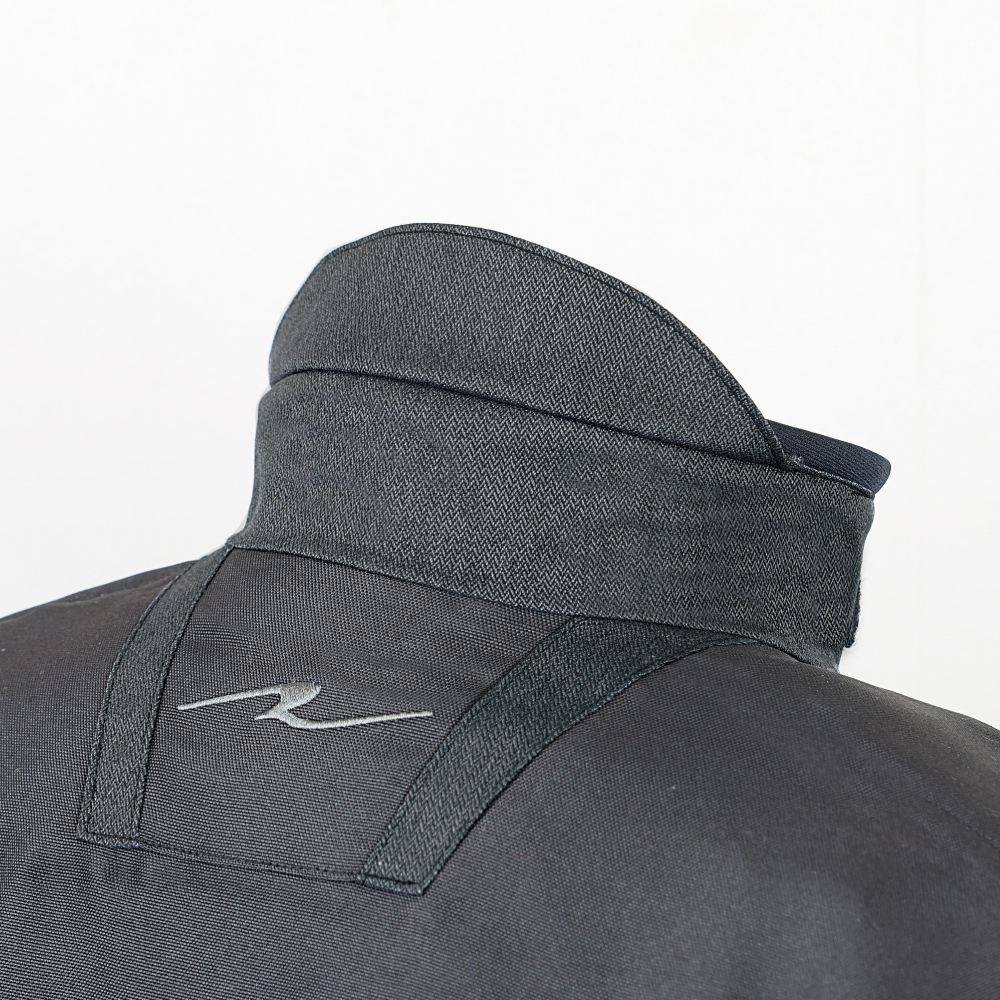 これだけ大きなベンチレーションを装備しておきながら、防水性もしっかり確保している全天候タイプ。襟にヘルメットとの間からの浸水を防ぐ防雨フラップも装備している。
