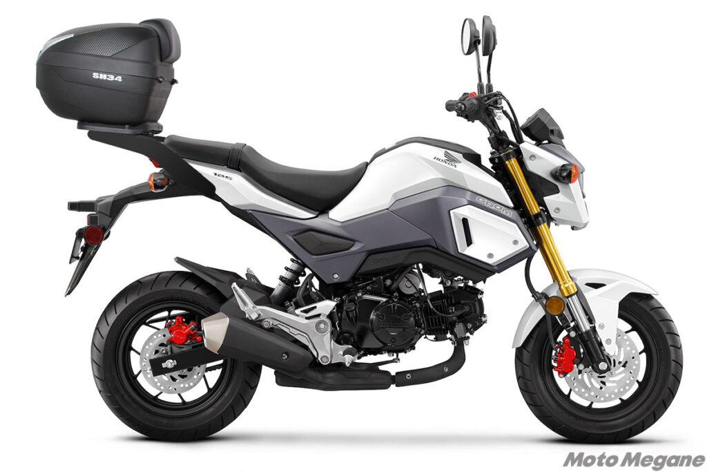 SHADの樹脂製トップケースは、最小モデルのSH26でも一般的なサイズのフルフェイスヘルメットを収納可能。GROMに装着することで、日常の足としてGROMを使いたいオーナーの利便性が大きく向上する。コンパクトで、スリムなGROMの車体とのバランスも良好だ。