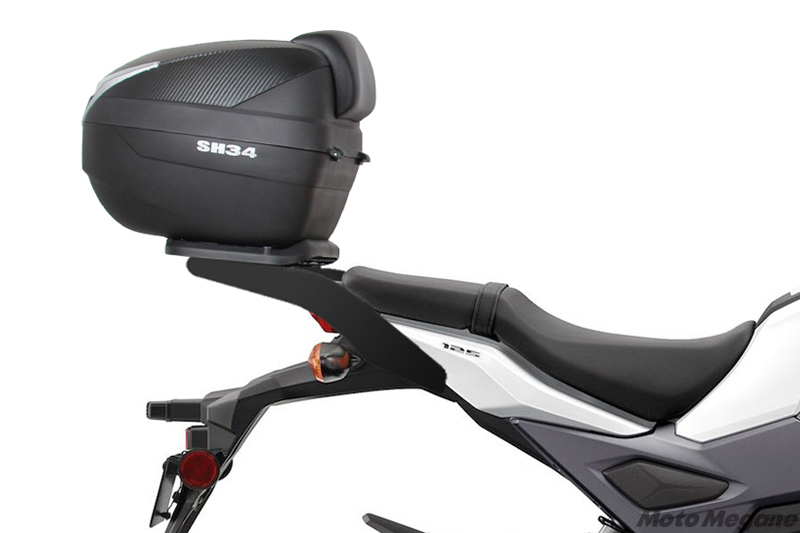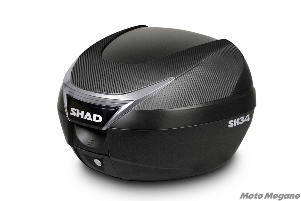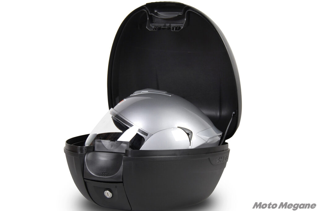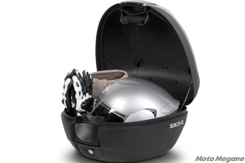 もう少し積載力を高めたいなら、SH34あたりの装着もお薦め。こちらも、もちろん一般的なサイズのフルフェイスヘルメットを収納可能。ヘルメットを入れた状態でもスペースに多少の余裕があり、グローブやレインウエアなどを収めやすい。またSH34は、SHAD純正アクセサリーパーツのバックレスト(品番D0RI40)を追加可能。これにより、SH34をタンデム時のバックレストとして機能させることもできる。