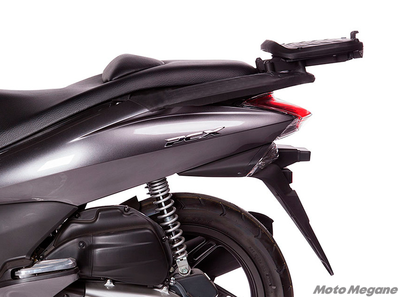 SHADの樹脂製トップケースとなるSHシリーズは、汎用の車体装着用ベースプレートと取り付け用金具が同梱されているため、愛車のPCXにリアキャリアをすでに装着している場合、これらの付属品を使用することで簡単にフィッティングできる。加えて、SHADは車種専用のフィッティングキットを展開(※PCXシリーズは2010年以降の全年式・タイプに適合/品番26509662)。こちらを使用することで、確実な固定が可能だ。