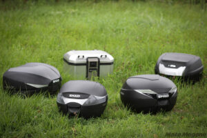SHADのケースやバッグは、とにかくその製品ラインアップが豊富。その中でもメインとなるのは、ハードタイプのトップケースで、こちらは容量によりSH26(約26L容量)からSH59X(容量可変式で最大59L)まで、日本でも14タイプが販売されている。またサイドケースも、SH23/35/36の3タイプが用意されている。