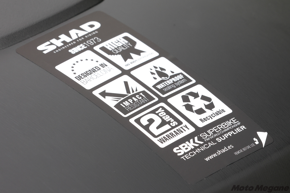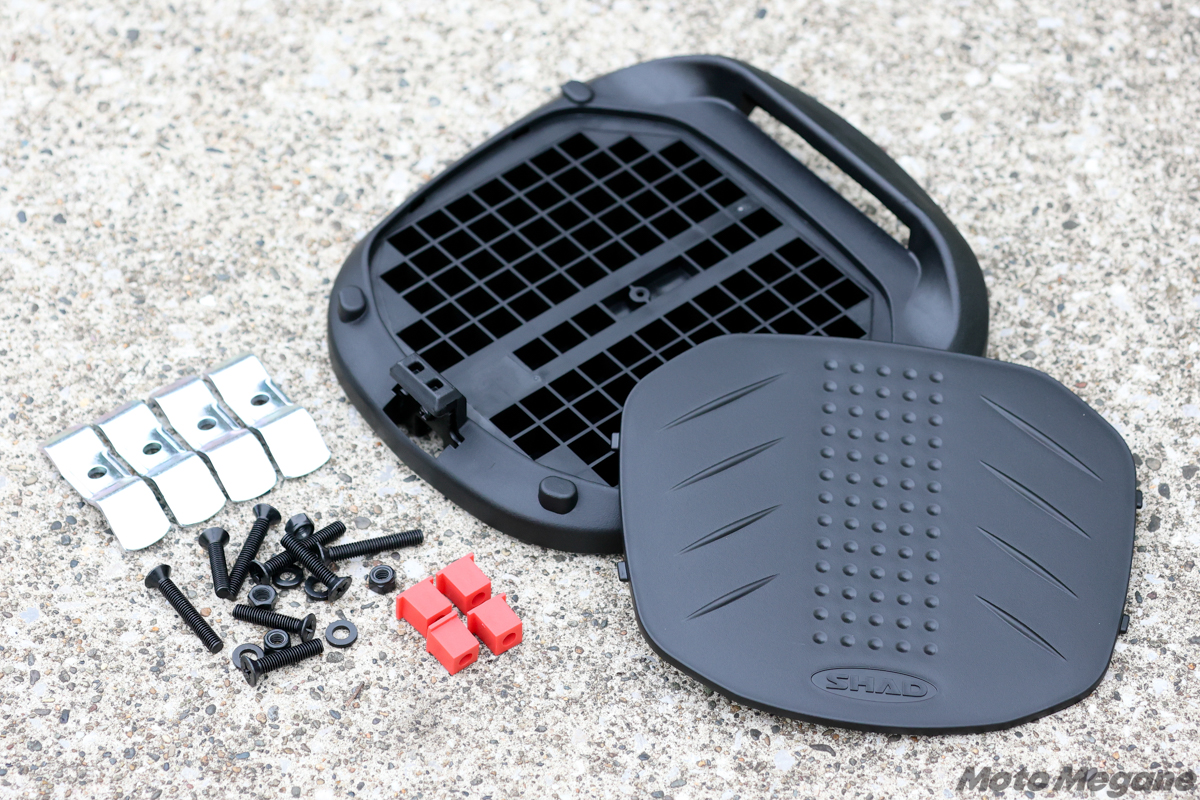 ちなみに、SHADの“イチ推し”となる製品はハードタイプのトップケースだが、このうちSHシリーズは、汎用の車体装着用ベースプレートと取り付け用金具が付属。愛車にリアキャリアなどが装着されている場合、これらの付属品を使用することで簡単にフィッティングできるほか、SHADから販売されている車種専用のフィッティングキットを用いて確実な装着を行うことも可能となっている。