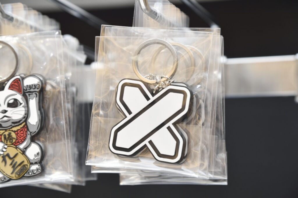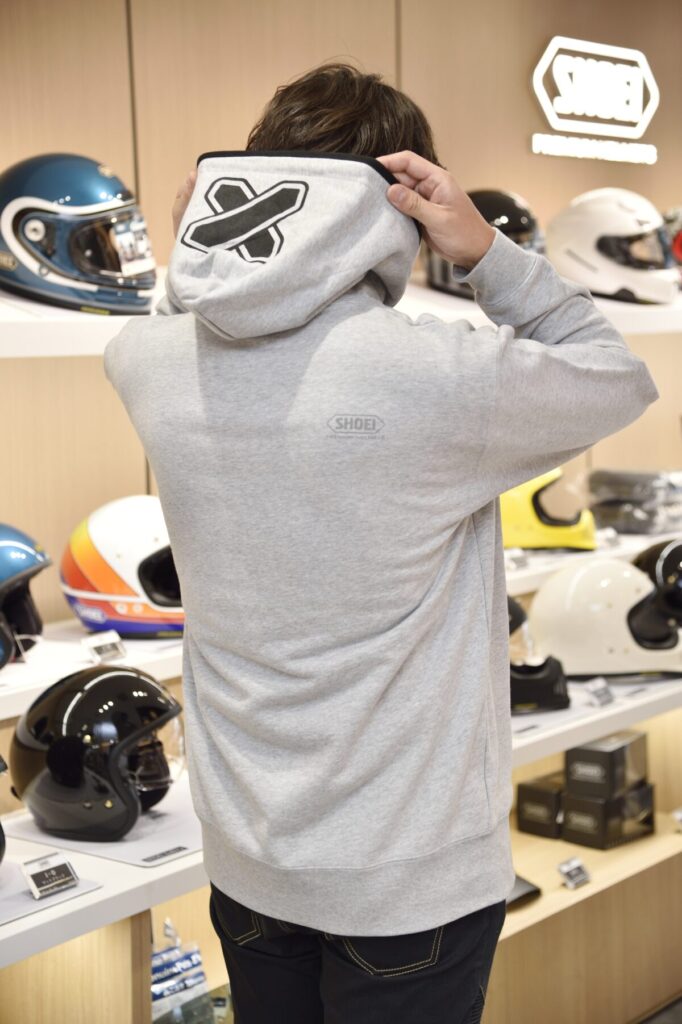 また、SHOEIの次世代アイコン的存在となっているNEXT LINEシリーズのアイテムも複数展開しており、パーカーやTシャツなどのアパレルグッズに加え、キーホルダーなどの小物アイテムまでクロスロゴがシンプルながらアイコニックでかわいらしく、どれもバイクライフ以外でも使いたくなるデザインとなっている。
