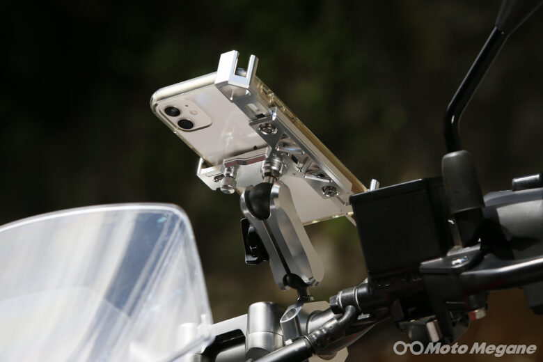 A-46スマートフォンホルダーはより美しいフォルムとし、アジャスト性も向上。より確実に固定することが可能となった。