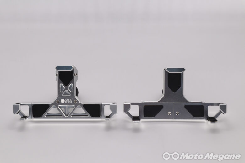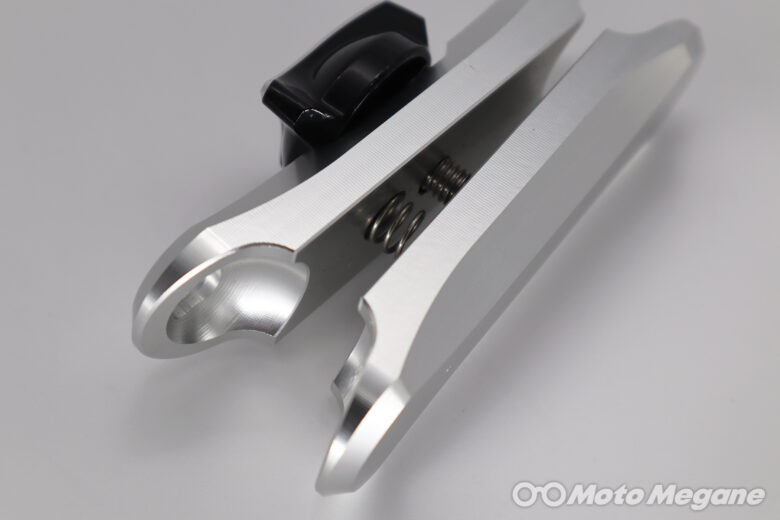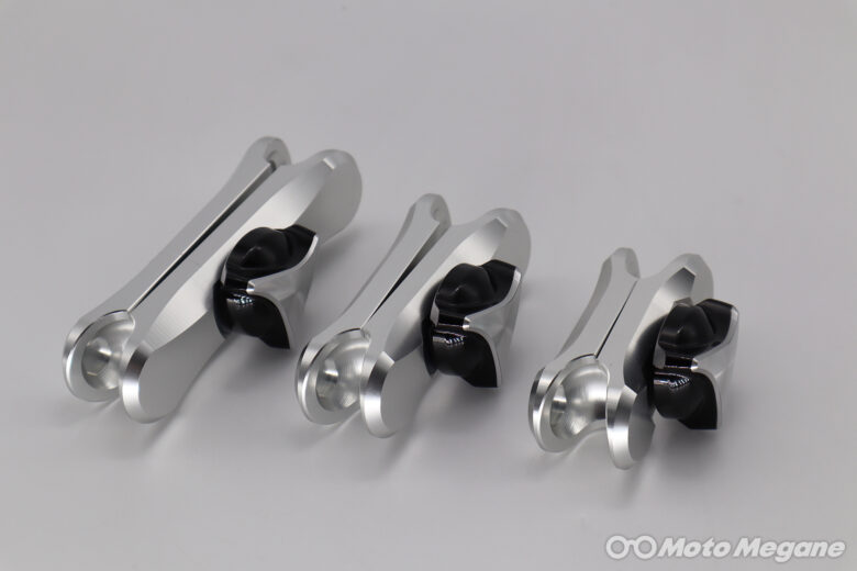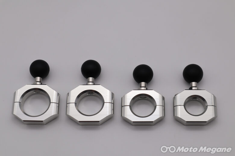 従来品より5㎜スリムでコンパクトとなった。パイプクランプベースの種類は、22.2㎜、1inch、28.5㎜、1.25inchの4種類をラインナップしている。