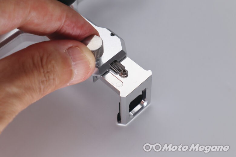 デザインが新しくなったノブ部は、締付け力もアップ。理想のセッティングを可能とした。