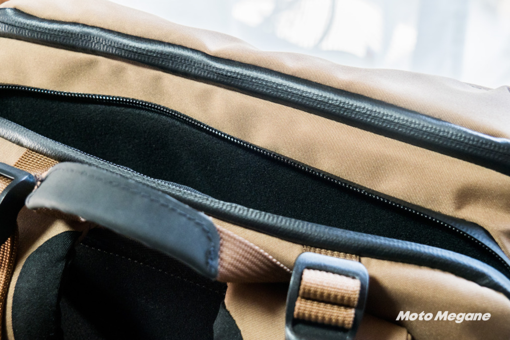 しかも透湿素材なのでバッグの中に湿気がこもりません。カメラやPCなどの電子機器を持ち運ぶには最適です。