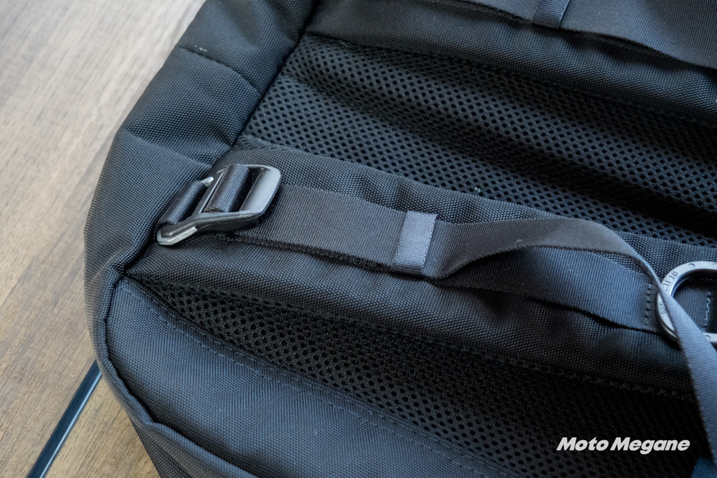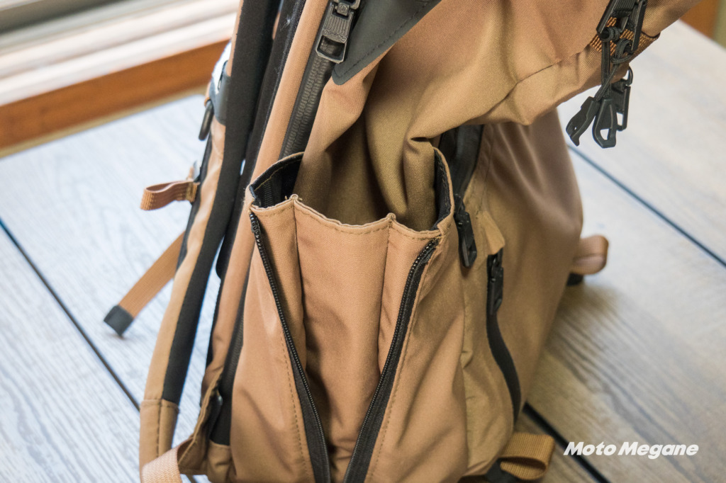 背中側に小物が入る収納があったり、フロント側も容量が大きいので荷物を分けて収納できる使い勝手の良さも◎。