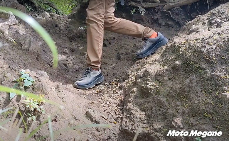 また、最初に懸念していた岩場だけでなく、ぬかるみや斜面も問題なくグリップし、「幅広なソール」が安定感を生み、予想以上に歩きやすかったです。
