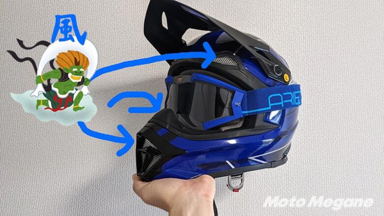 オンロードヘルメットから移った人は、風に押される感覚が強いと思います。