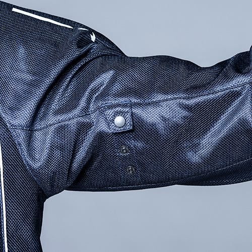 - 袖部分の調節タブで走行風によるバタつきを軽減します。