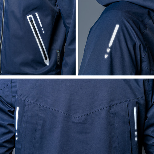 - デザインの一部に暗所での被視認性を高めるリフレクトプリントを採用しています。