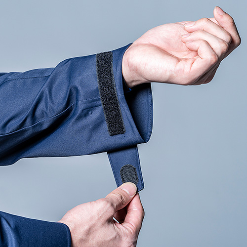 - 袖口部分のベルクロを調整することで、袖口からの風や雨水の侵入を抑えることが可能です。