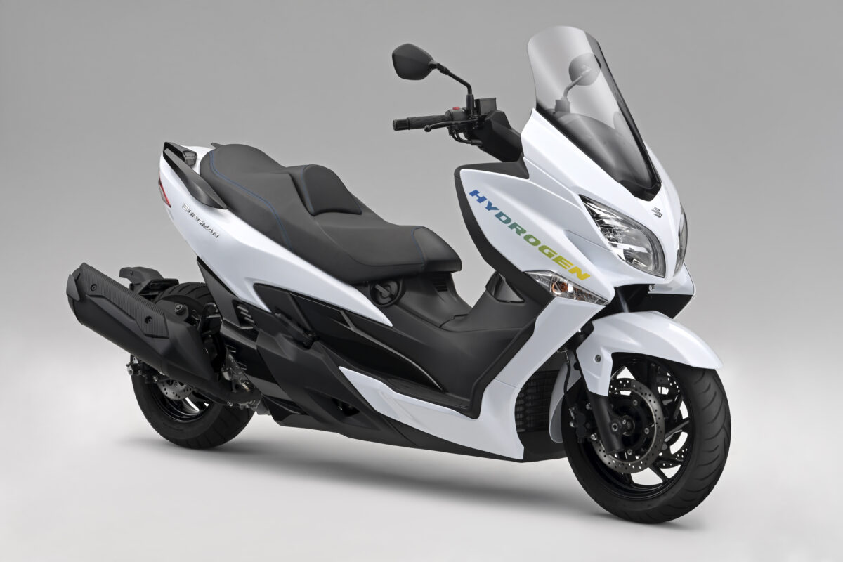 ・市販モデル「バ―グマン 400 ABS」に 70MPa の水素タンクと水素エンジンを搭載した試験車両のカットモデルを展示します。