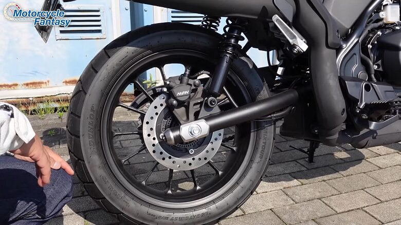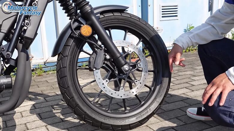 フロントは19インチ、リアには17インチのアルミ製キャストホイールを採用。タイヤサイズはフロント110/80-19、リア150/70-17をそれぞれ履く。セミブロックパターンのタイヤはスクランブラーらしいアクティブなイメージを強調している。