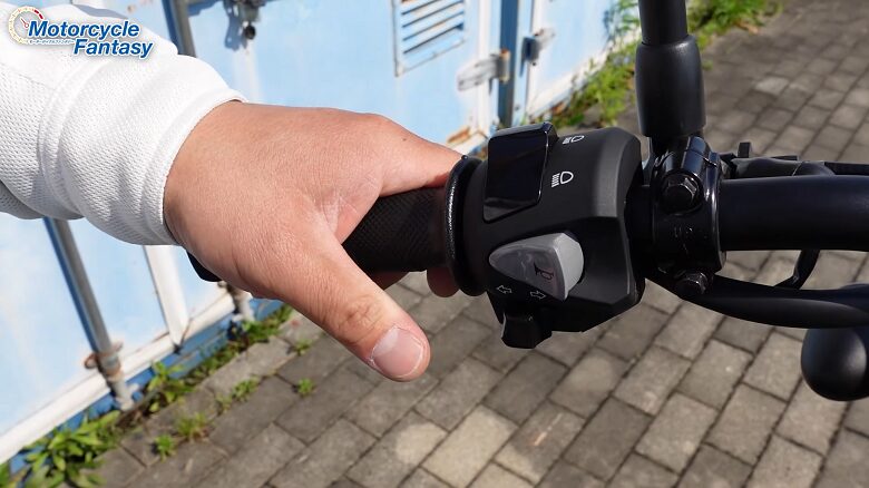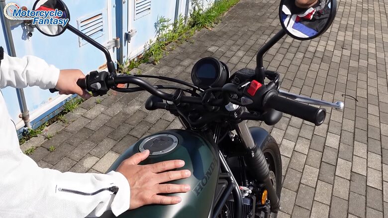 ハンドルはオーソドックスな22mmφ径タイプで、バーエンドは搭載せずに非貫通式のラバーグリップを採用。ハンドルポストには振動軽減のラバー製ダンパーを装備。ブレーキ&クラッチレバーの調整機構は搭載されていない。電子制御アシストも非搭載のため、左右スイッチボックスもホンダのオーソドックスなタイプを採用する。