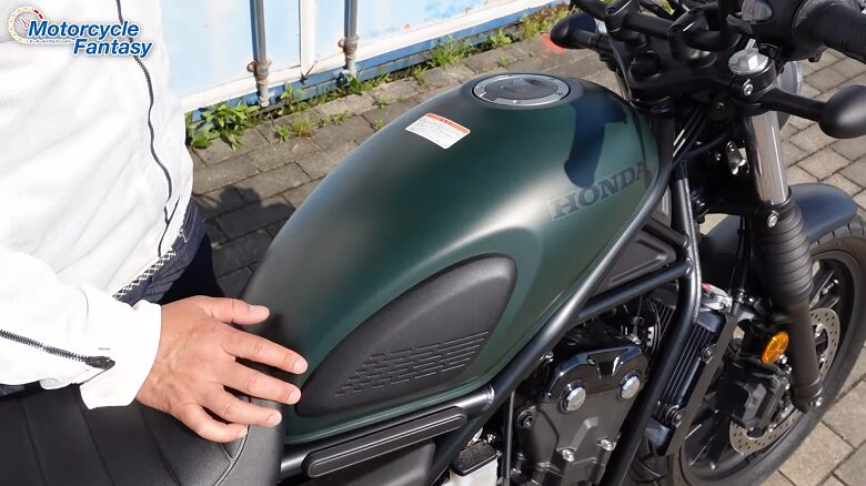 燃料タンクはスチール製で、容量は12L。ニーグリップが当たる部分には左右にパッドを装備。ガソリンはレギュラー指定。シートはライダー側にタックロールデザインを採用してホールド性を追求、パッセンジャー側はフラットだが十分な面積を持つ。