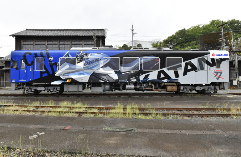 スズキが天竜浜名湖鉄道株式会社とのタイアップにより運行している「KATANA ラッピング列車」。