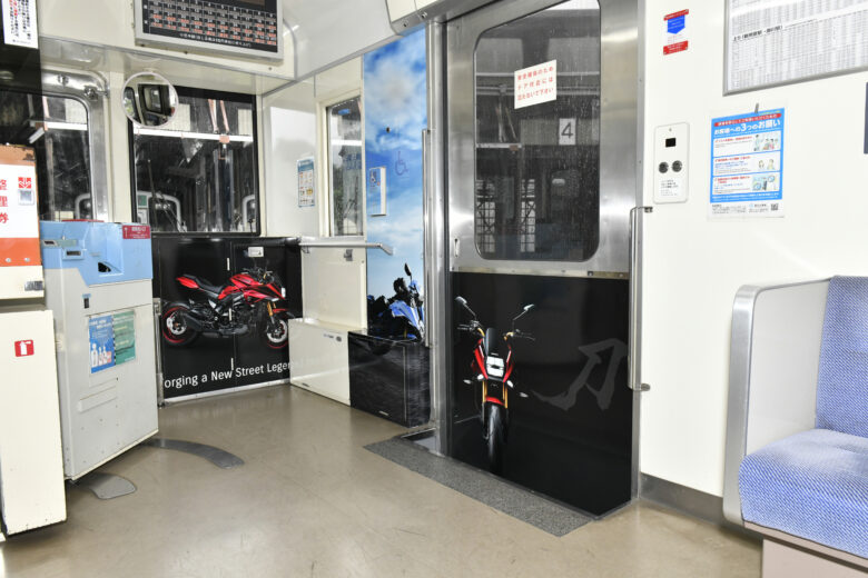 株式会社スズキ二輪は天竜浜名湖鉄道株式会社とのタイアップにより、2019年9月15日から天浜線(新所原駅~掛川駅)を運行している大型二輪車「KATANA」のラッピング列車が、新色となってリニューアルした。
