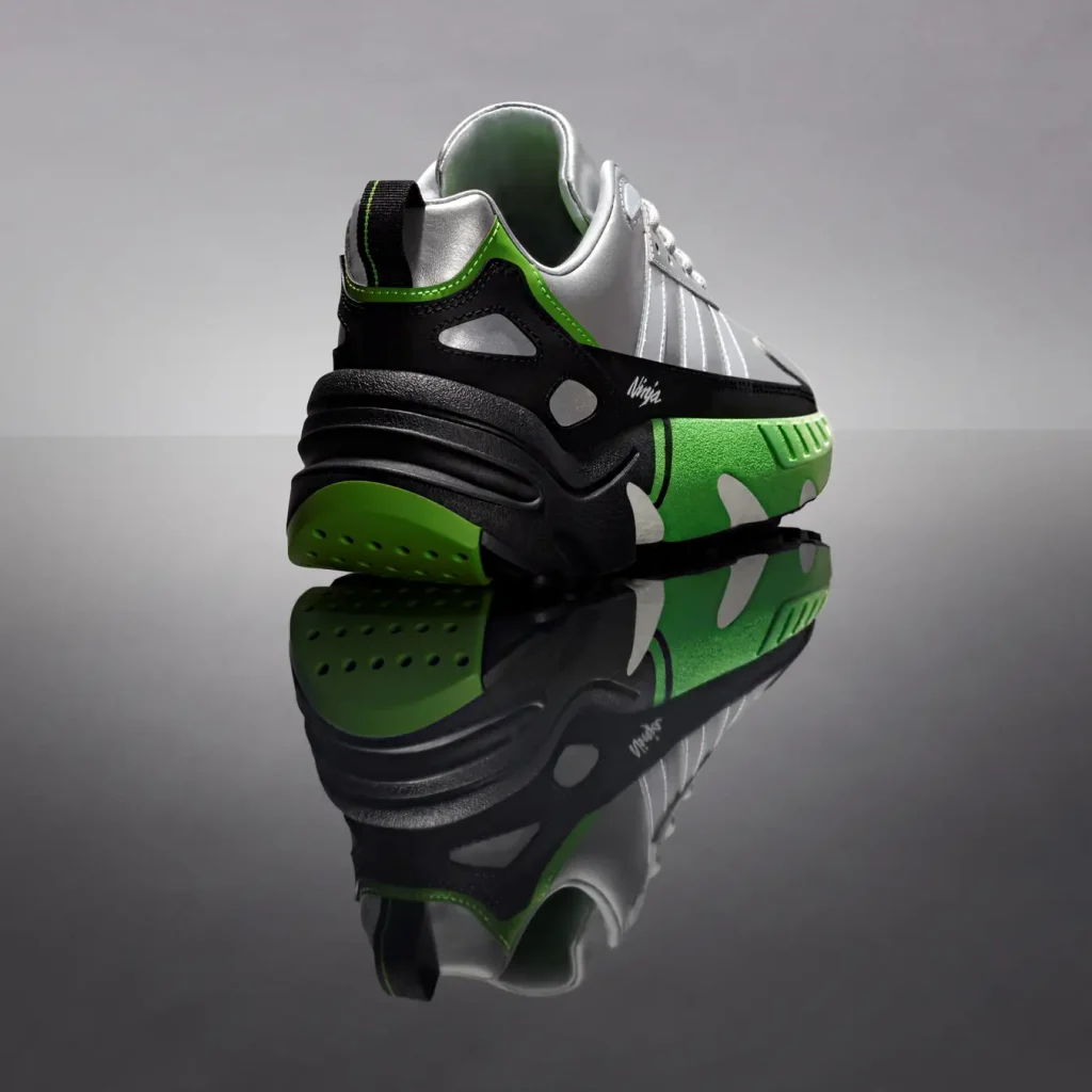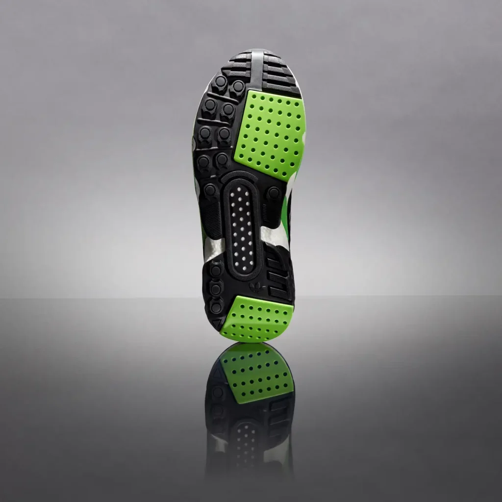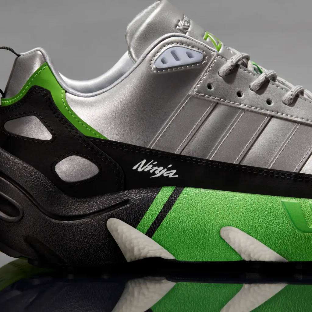 この第二弾「ZX22 KAWASAKI」の未来的なデザインは、カワサキの美学をZXスニーカーの世界と融合。大胆なメタリックカラーをメインに、ブラックとライムグリーンでアクセントが施されています。
