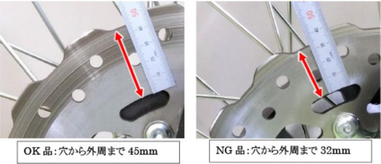 全車両、前輪のブレーキディスクを点検し、異品である場合はブレーキディスクを正規品に交換するとともに、ブレーキパッドも交換する。発見の動機 市場からの情報による。