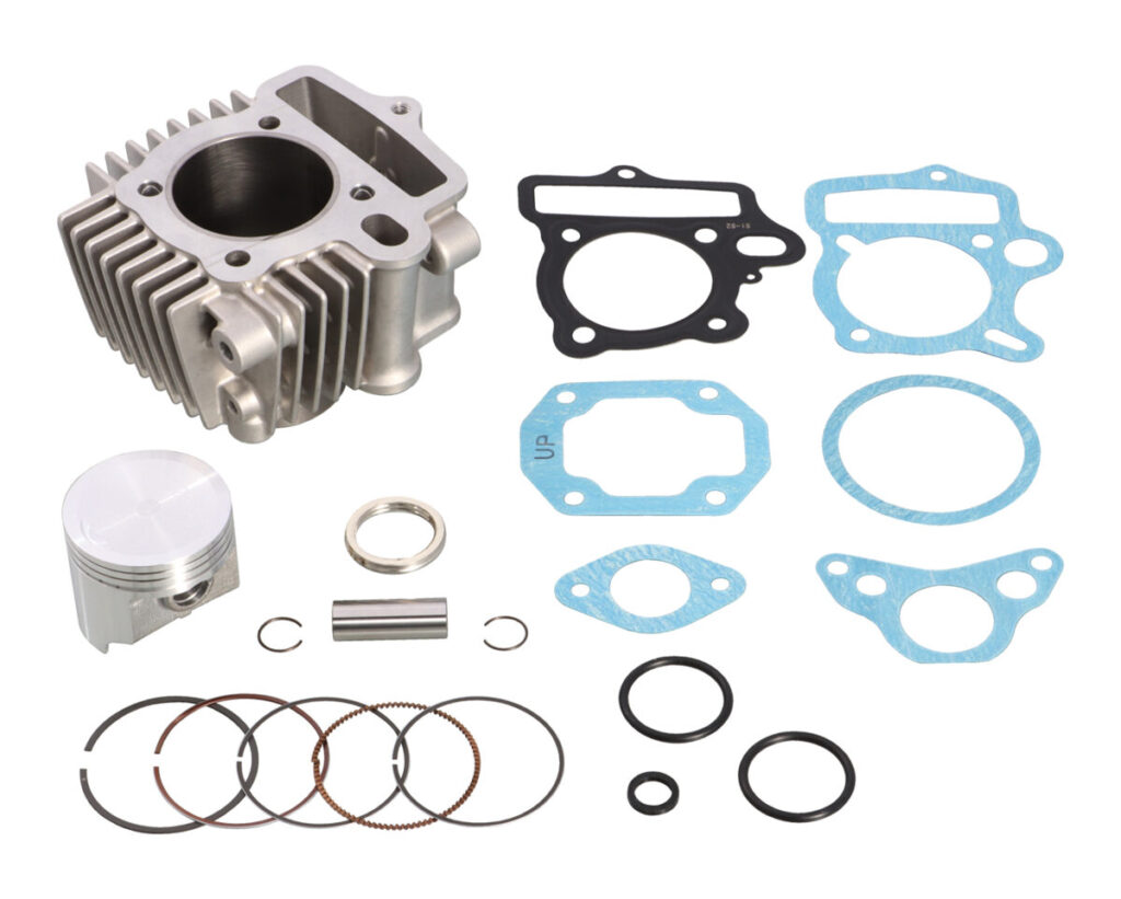 ●アルミシリンダー(鋳鉄スリーブ) ●排気量:108cc ●ボア径:φ52 ●ストローク:51.0mm(ロング) ●バルブ取込済 ●ピストン:鋳造